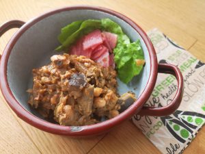 2 Spitzpaprika 100 g Melanzane 3 EL Sojaflocken 1 kleine Zwiebel 1/2...